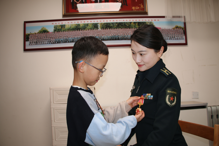 6岁男孩为母亲佩戴奖章:“荣誉属于我的母亲”